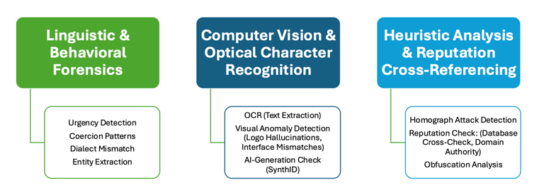 The tool utilizes advanced AI—including linguistic forensics, computer vision, and optical character recognition (OCR)—to scan for "kill switches" such as urgent requests for passwords, grammatical errors, and visual anomalies in logos.