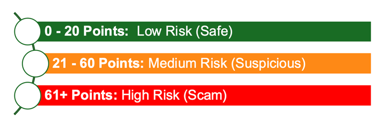High Risk (61+ points): Likely a scam, with guidance on how to avoid it.